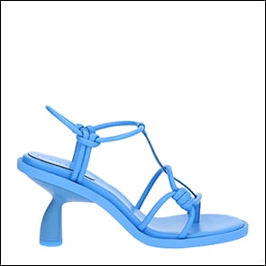 Sky blue and pristine white are reminiscent of fine sunny days - these clean, refreshing colours reflect the carefree spirit of summer. Our strappy knotted thong sandals, featuring quirky blade heels, hint at a nautical inspiration that brings to mind days spent by the ocean. The sleek yet unusual shape of our white thong mules give it a futuristic allure.