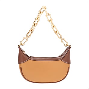 Colour-blocking is a great way to inject visual interest into your outfit. The Aiden canvas half-moon bag and Shalia canvas moon bag both feature contrasting neutral-toned panels that make them stand out while remaining understated. Chunky chain straps add a youthful and fashion-forward element to these sophisticated bags.