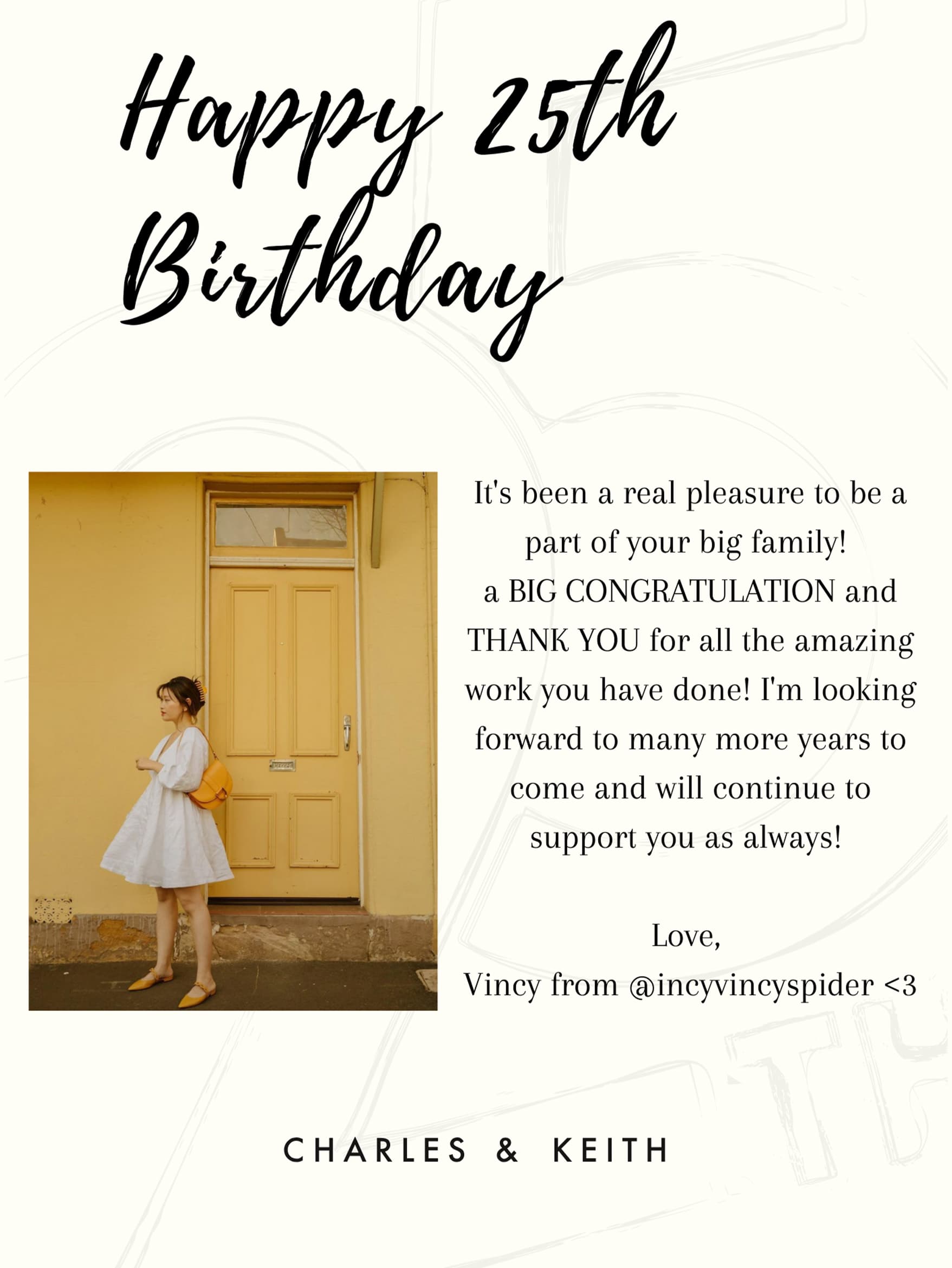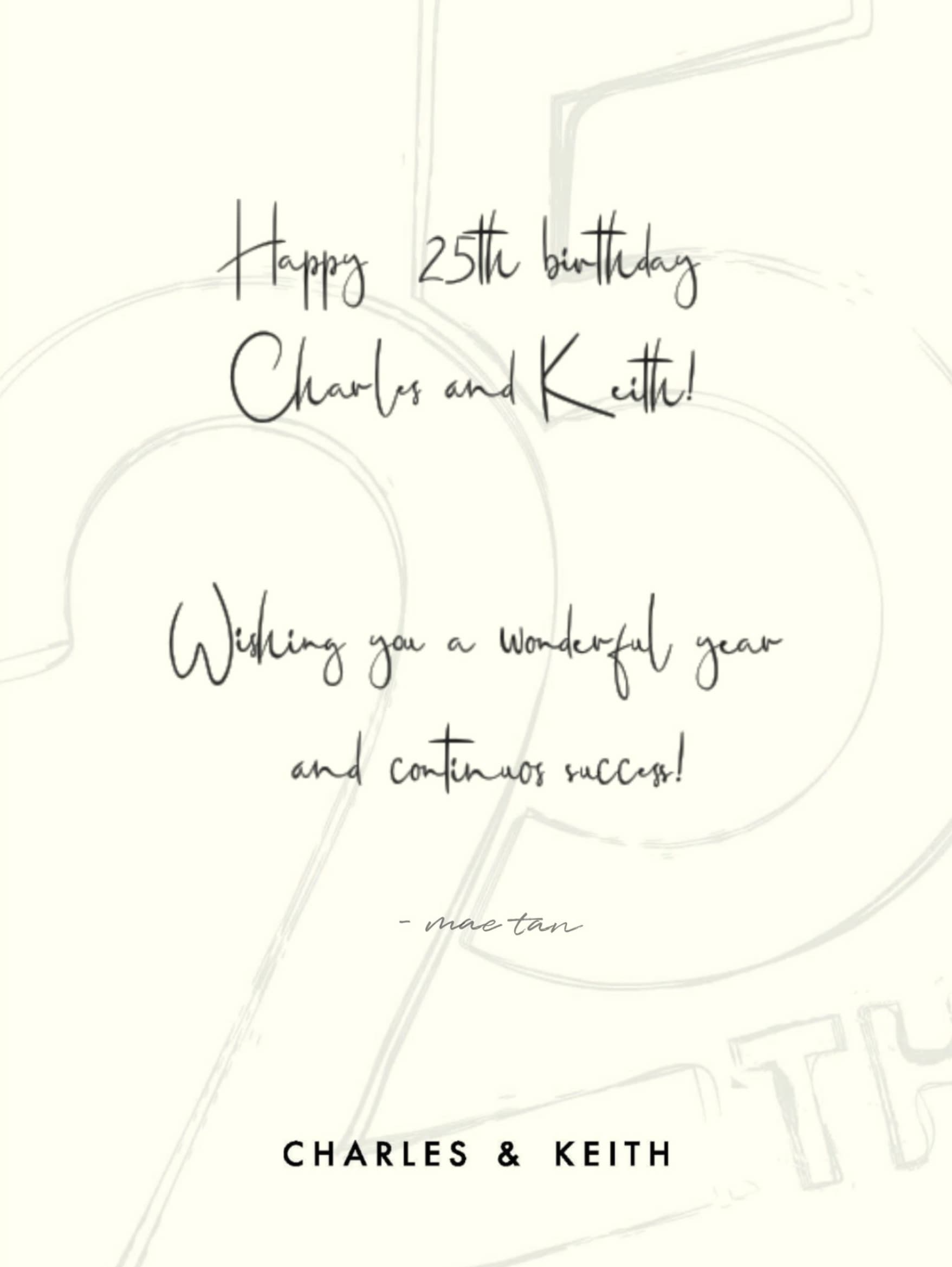 There are few milestones in CHARLES & KEITH’s history that is more special than the one it has just arrived at — it is not every day that a brand celebrates its 25th birthday. To celebrate this momentous anniversary, we have invited some of the friends we have worked with through the years to share their hopes and wishes for the brand.