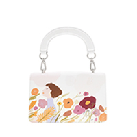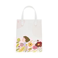 Colourful and floral-filled, the artwork stands out against a clean white background on our tote bag, top handle bag, passport holder, cardholder and wallet, and will add a touch of feminine charm to your new seasonal wardrobe.