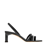 Our see-through buckled bag added a modern touch to María Bernad's retro-inspired fashion week outfit. To create a balanced look, the Madrid-based creative completed her colourful and eye-catching look with our strappy slingback heels in stark white.