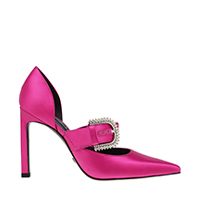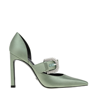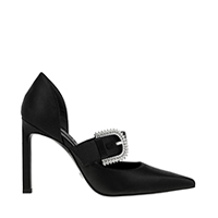 - SATIN EMBELLISHED BUCKLE MARY JANE HEELS >
