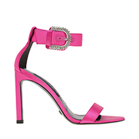 - SATIN EMBELLISHED BUCKLE STILETTO HEEL SANDALS >