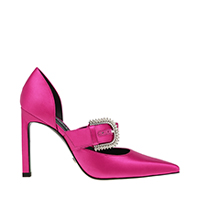 - SATIN EMBILLISHED BUCKLE MARY JANE HEELS >