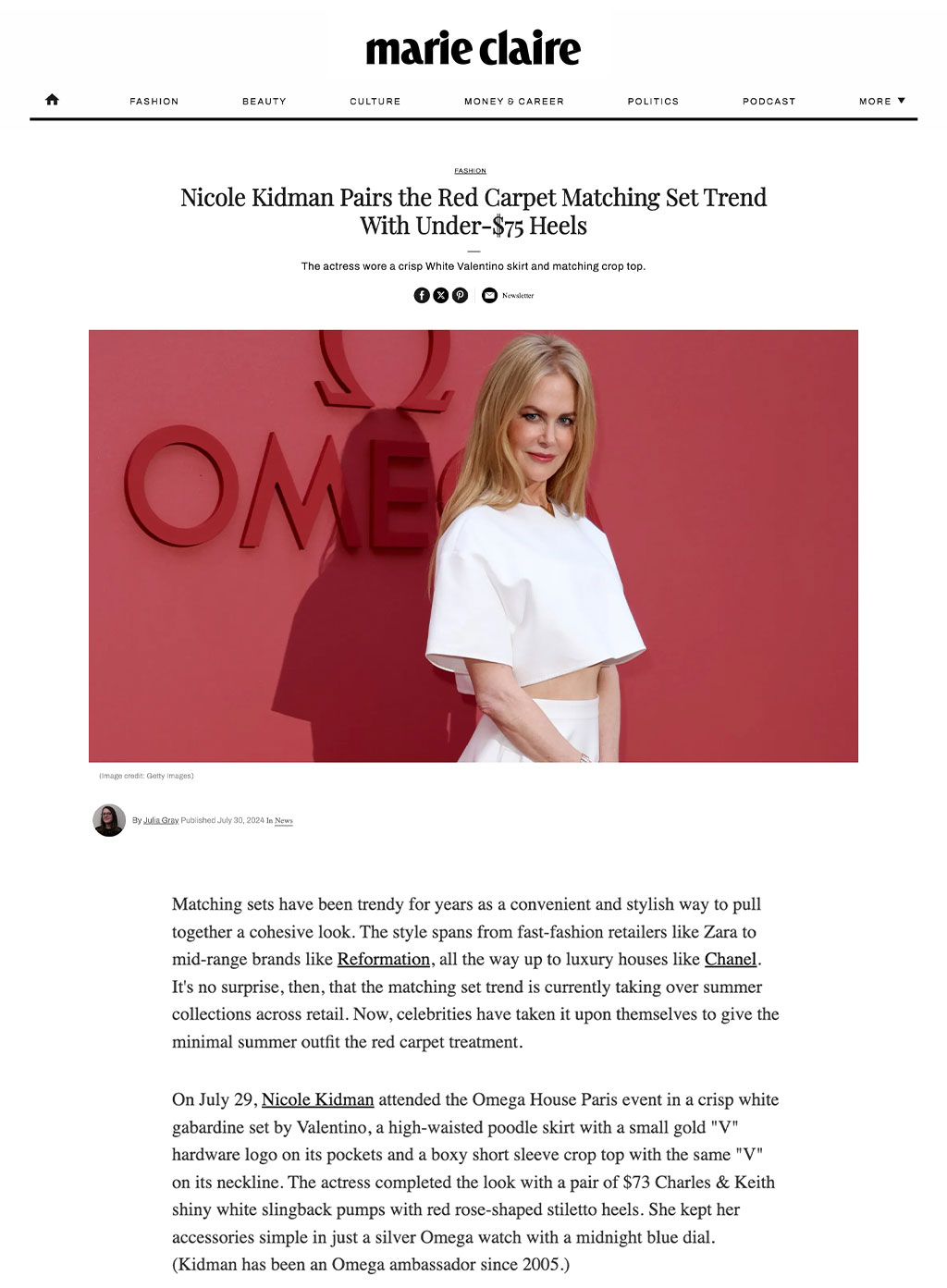 Marie Claire featured the Flor rose-heel slingback pumps, as seen on the Australian-American actress at Omega's 'Her Time' event.