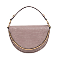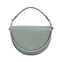 A flash of white on New York City’s busy streets, Isabel Tan stood out from the crowd in a striking neutral-toned outfit. To add a splash of colour to this monochromatic fashion week look, the Singapore-based fashion blogger toted our semi-circle top handle bag that features two hot trends in one: a luxurious mock croc finish and of-the-moment sage green.