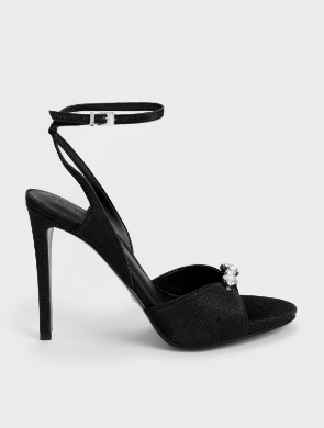 Ariana DeBose was spotted in CHARLES & KEITH while attending the Vanity Fair Oscar Party in Beverly Hills, California. Looking elegant in a black sheer lace pantsuit, the American actress keeps her accessories simple — the ankle-strap heeled sandals in textured black paired with a statement necklace completes her sophisticated ensemble.