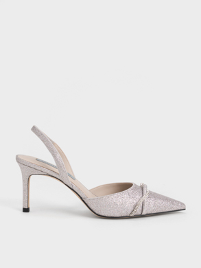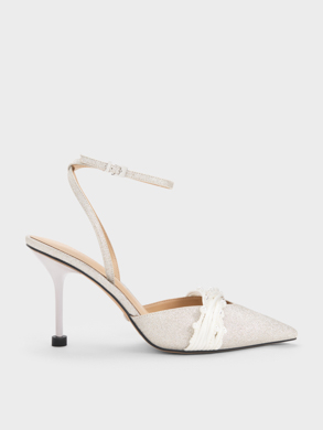 BEKA was spotted in CHARLES & KEITH while attending the Bora Aksu Spring 2024 Show at London Fashion Week. The British singer-songwriter embraced the on-trend coquette aesthetic in an all-white ensemble. Experimenting with different textures, she paired an intricate mesh dress with a knitted bonnet, completing the look with the twist-detail glittered slingback pumps. With its elegant twist detail and glittered finish, the pumps add subtle visual interest to her editorial look.