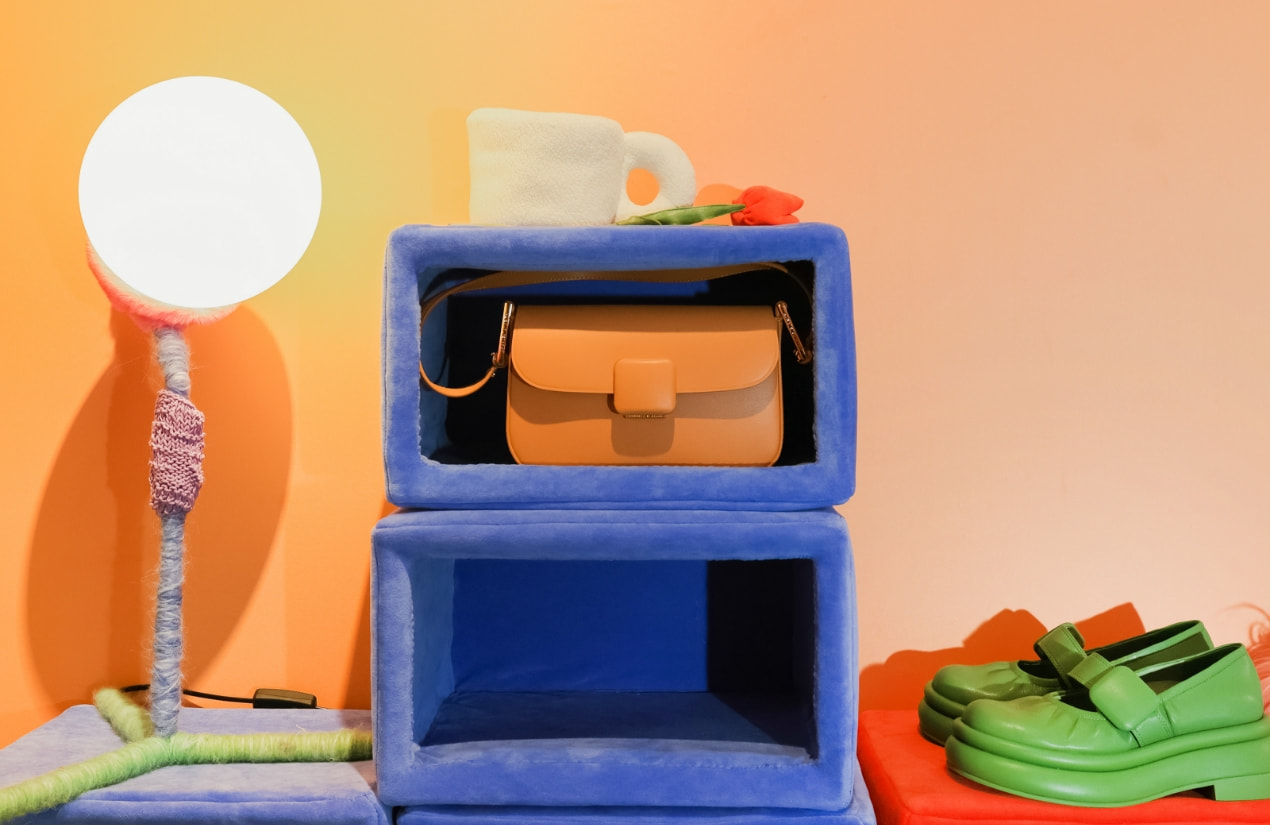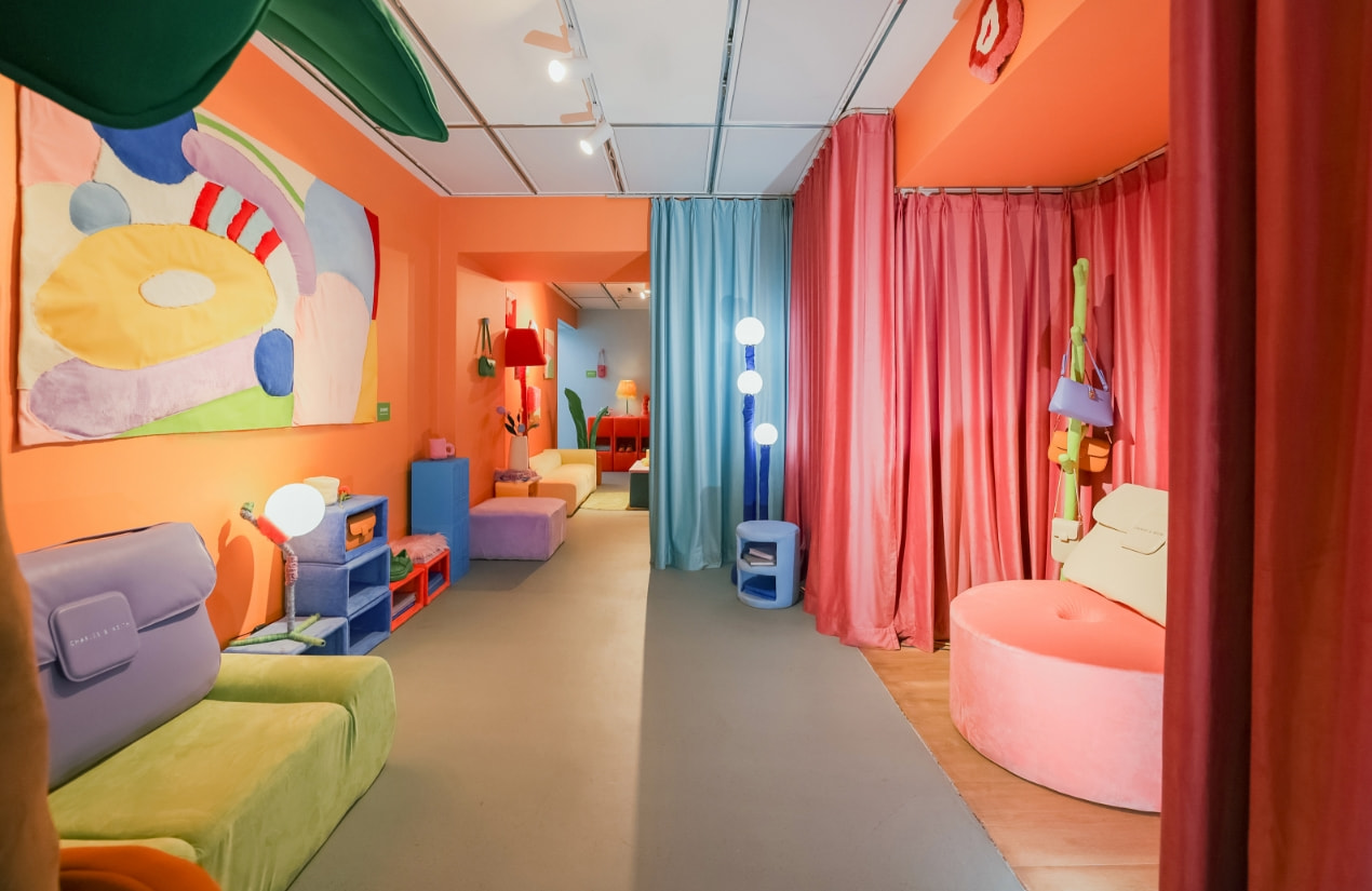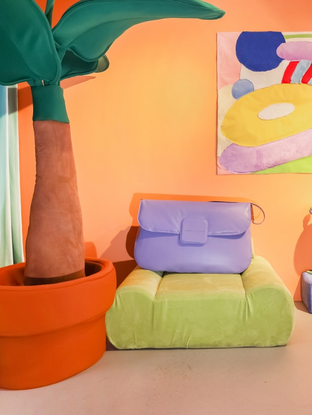 In the Puffy Collection Room, you will find a colourful pastel backdrop inspired by the hues of our Koa shoulder bag.