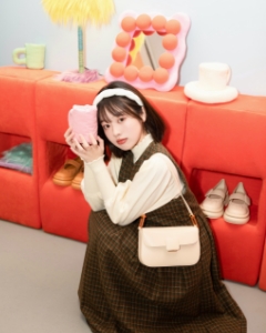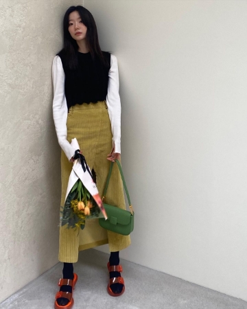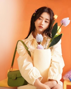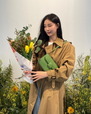 Evoking images of nature and the great outdoors, our Koa shoulder bag in green – as seen on Jung Hye Im here – is the perfect bag for spring.