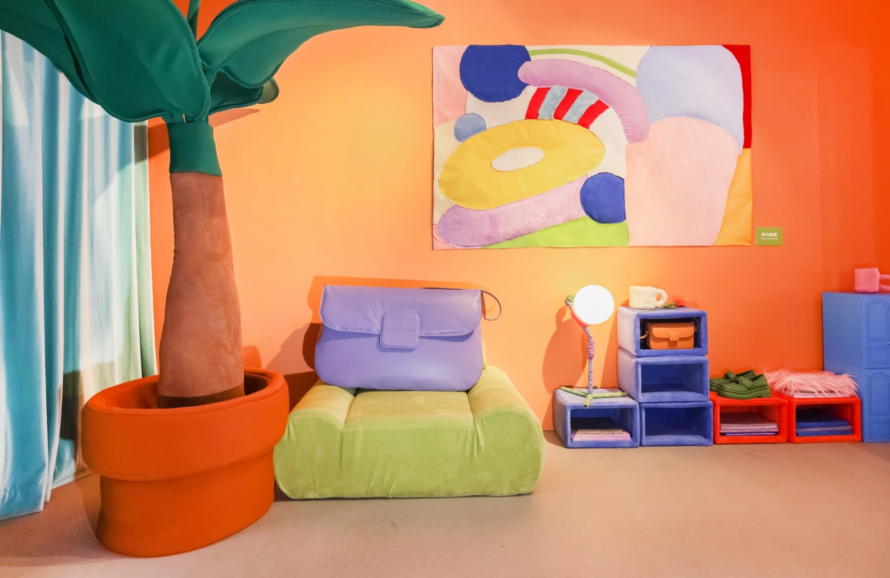 In the Soft Living Room, there is a potted plushie plant and a cushion in the form of the Koa shoulder bag – a highlight of our Spring 2022 collection.