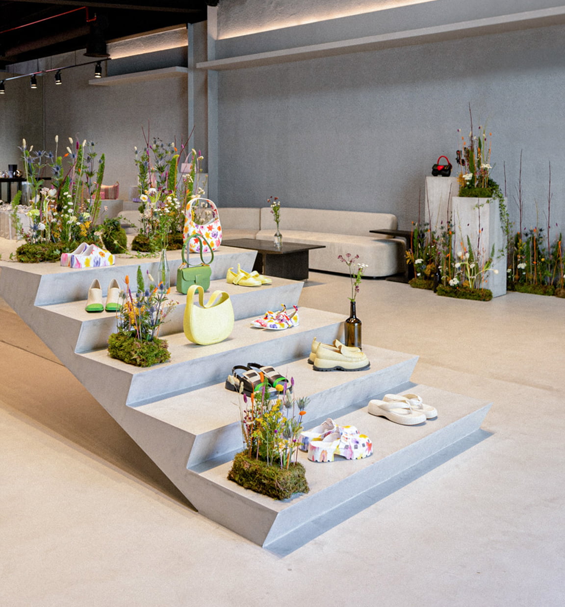Using bright blocks inspired by the colour palette of our Spring 2022 product range and beautiful floral arrangements, we transformed an empty space in Seoul, Korea, into an enchanting wonderland. This conceptual indoor garden would later become a gathering ground for the local media and celebrities to celebrate the launch of our new seasonal collection.