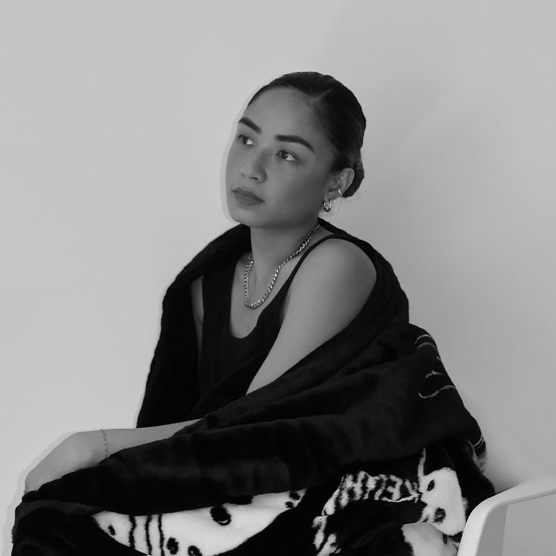 Digital content creator and tattoo artist Kira Oliva decks out from head to toe in the CHARLES & KEITH X HENN KIM collection. Putting up her hair with the illustrated heart scrunchie, she stays cosy with the illustrated heart cosmo blanket and keeps her feet warm by pairing the illustrated heart charm ankle boots with preppy white socks.