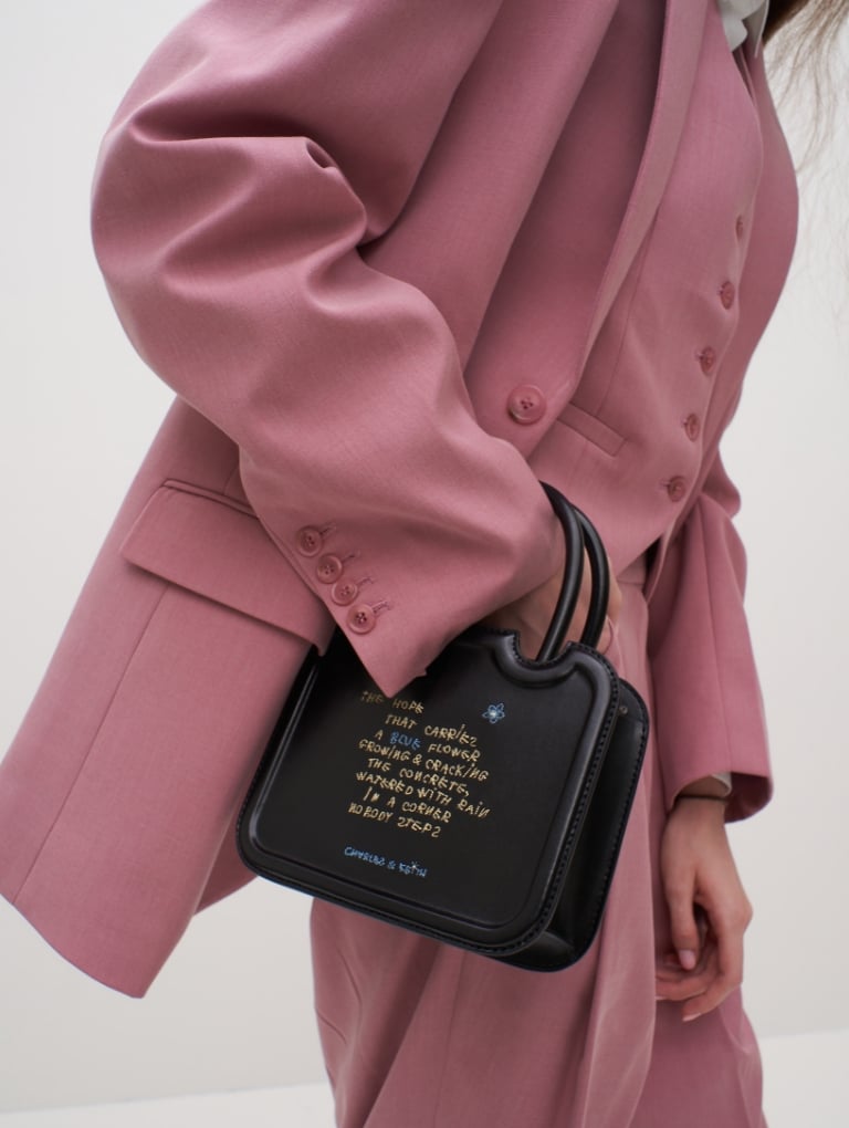 CHARLES & KEITH has teamed up with renowned Spanish-born artist Coco Capitán to create an exclusive capsule collection. Exploring the emotional complexity of prose through fashion, the charming designs in this collection feature the artist’s handwritten signature script. This all-black capsule is designed as a conversation starter that invites all to ponder the quiet brilliance behind Capitán’s words.