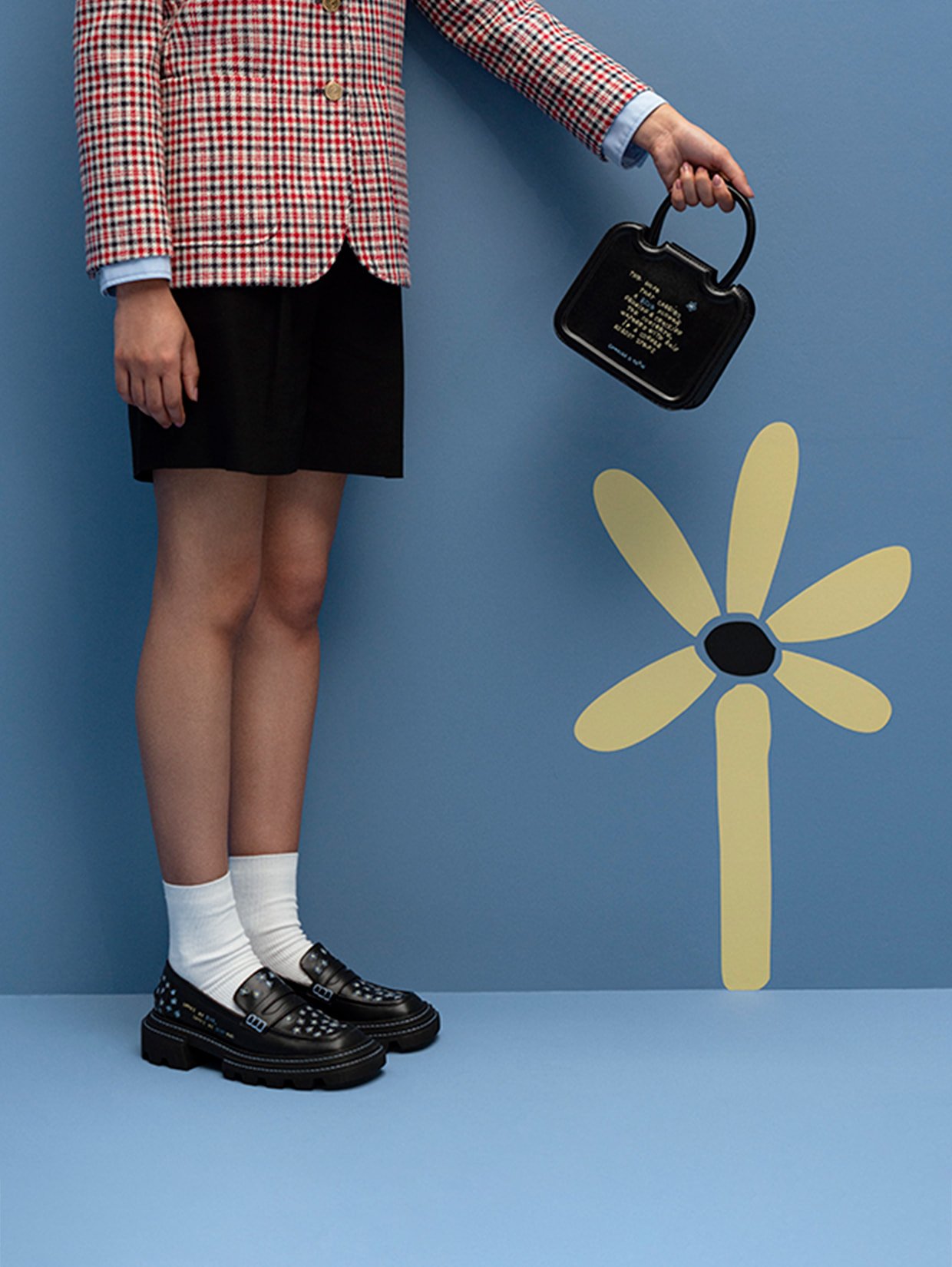 English designer and illustrator @poppyalmond is known for her bold and colourful work. The art and prose featured on the Perline chunky penny loafers and sculptural tote bag from our #CocoCapitanxCharlesKeith collection are a perfect match for her quirky personal style.
