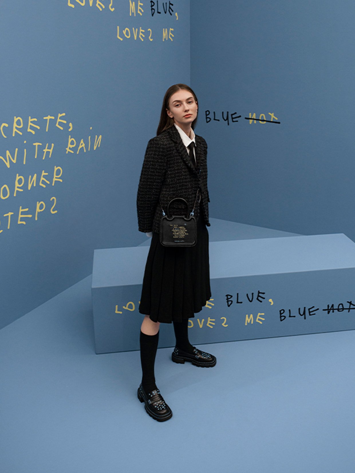 Featuring androgynous and structured silhouettes, the Perline Chunky Penny Loafers and Perline Double Handle Sculptural Tote Bag serve as canvases for Coco Capitán’s art, while reflecting the sensibilities and understated elegance of CHARLES & KEITH’s design aesthetic. These pieces, paired with the artist’s poignant prose, are perfect collector’s items for art lovers and the fashion-forward crowd.