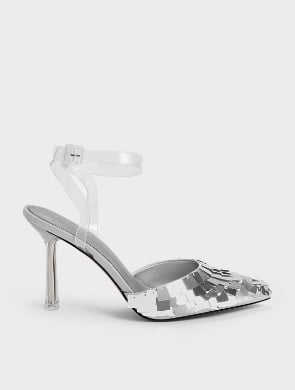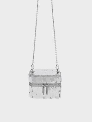 If you prefer a more understated party look, reach for silver-toned accessories like the sequinned ankle-strap pumps and Freja wavy quilted bag. They will help you ease into this season’s metallic trend by adding a hint of shine to your outfit. Combine both pieces in one look to create a polished and refined aesthetic.