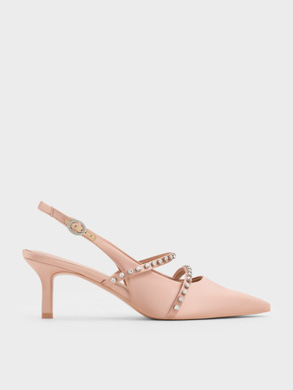 Trendier options include a hybrid of pointed-toe pumps and Mary Janes, with slingback straps that offer an alluring appeal without sacrificing fit or comfort. Our featured pairs boast a sleek satin finish that adds a touch of shine and crystal embellishments for dazzling elegance, elevating the overall design.