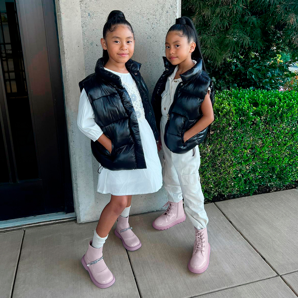Mini fashion influencers dress up their colourful outfits with our bold and brilliant new kids’ shoes
