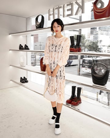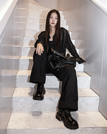 Influencer Jang Jinju embraced a preppy-chic look, elevating her aesthetic with the sleek metallic Charlot bag and Pixie platform ankle boots.
