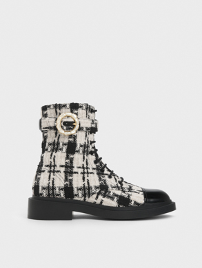 Elevate your winter style by embracing cosy textures. Statement pieces featuring patterned materials like shearling, tweed, and textured knit will add tactile flair to your travel outfit, creating a warm and elegant ensemble. This season, the timeless combination of white and camel makes a comeback, and you can stay on trend with iconic pieces like the Charlot bag or Gabine sneakers.