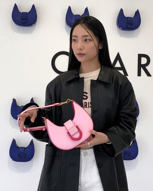 Dressed in a sporty-chic varsity jacket and a cute flared mini skirt, model Jenny Park added a sweet and feminine touch to her look with the ITZY Gabine belted hobo bag in pink. The resulting ensemble exudes a youthful exuberance that reflects Jenny’s bubbly personality.