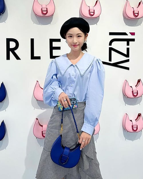 Looking pretty and demure in a pointy-collared blouse, gingham skirt and a black beret, fashion blogger Minkyung opted for the ITZY Gabine belted bag in cobalt to complete her outfit. Her vintage-inspired look is refreshed by the modern aesthetic of the vibrant, jewel-toned bag, which gave it a cool contemporary update.