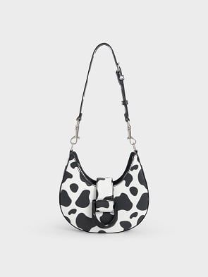 The ITZY Gabine belted hobo bag is a reimagination of CHARLES & KEITH’s iconic Gabine saddle bag. This brand new silhouette is accompanied by a nifty buckle closure. The crescent-shaped bag is available in some of ITZY’s favourite seasonal colours, namely cobalt blue, green, dark moss and pastel pink — it also comes in a quirky and trendy cow print.