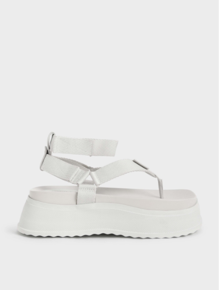 French model and content creator Laura Bettina has a way of making dark, monochromatic outfits look incredibly cool and chic. Dressed in a cropped grey blazer and matching cargo pants, she completes her outfit with the Joss flatform thong sandals in chalk — the overall effect is stylish and utilitarian, with a touch of ‘90s vibe.