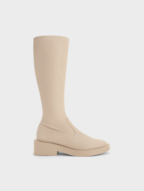 To ease into the trend, start off on the lighter end of the spectrum. Milky hues and muted browns are easy to style and will complement both lighter and darker palettes. Opt for classic silhouettes and minimal styles to let the soft hues stand out. For instance, the unembellished exteriors of the side zip knee-high boots make them a polished accompaniment to your winter outfits.