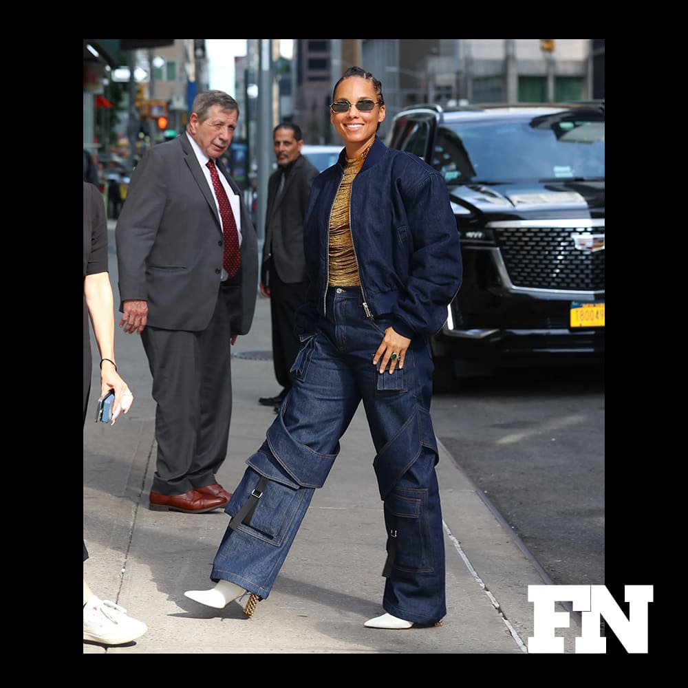 Alicia Keys was seen in our pointed-toe quilted heel ankle boots, as featured in Footwear News.