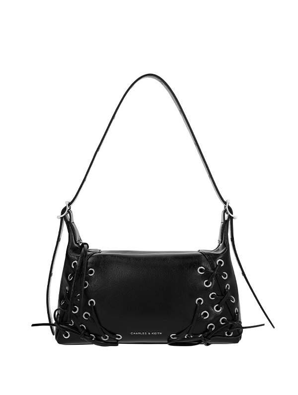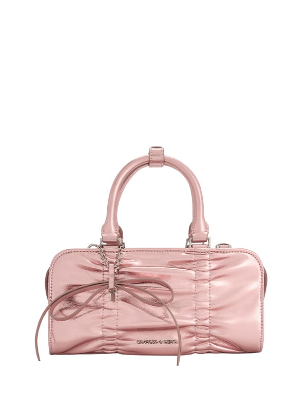 Forget the usual black bags — this season calls for something with attitude. The Kadee ruched bag and Xylia grommet bag bring just the right amount of edge to any outfit. Both styles feature delicate bow charms that soften the bold details.