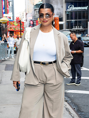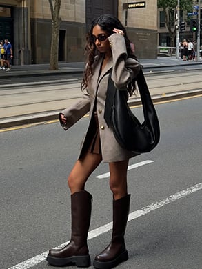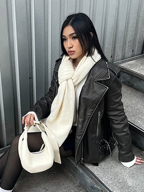 The slouchy silhouette of the Toni hobo bag added a touch of laid-back elegance to Tashiya’s structured blazer and pleated skirt combination. Finished with platform knee-high boots, the fashion maven’s preppy-chic ensemble is perfectly suited for transitional weather.