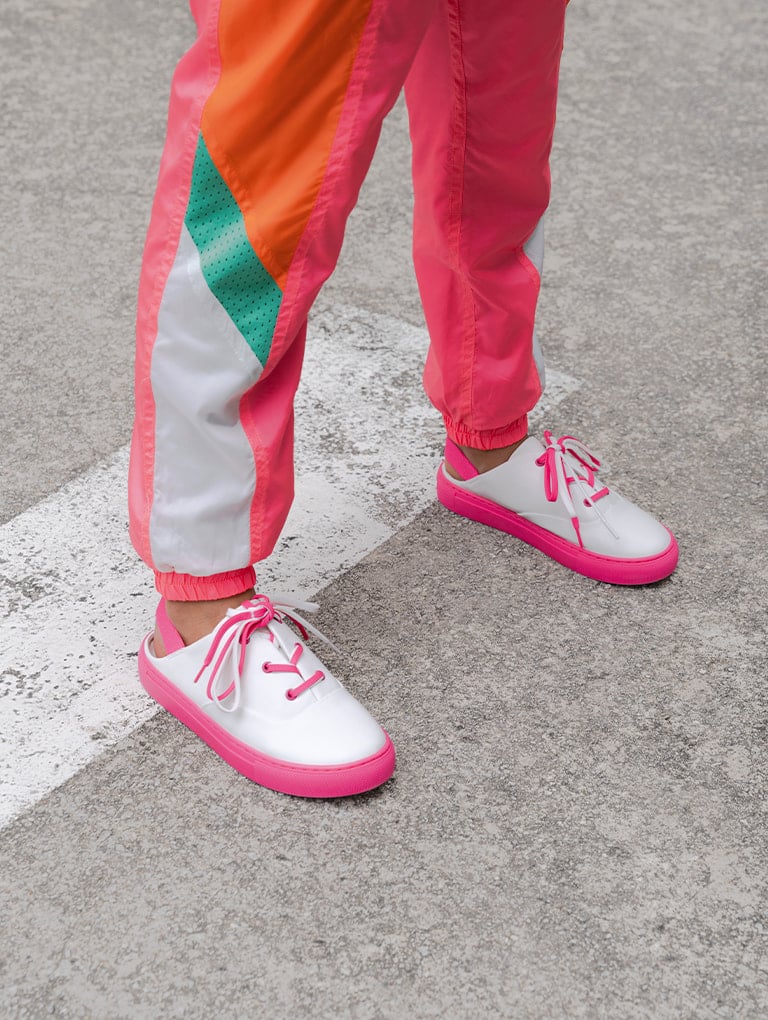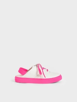 Slingback shoes are kid-friendly because it is easy for little hands to put them on and take them off. Our two-tone lace-up sneaker mules in fuchsia put a fantastic finishing touch on a colourblocked track suit, while the charming jacquard back-strap sandals inject a dose of girlishness into a cute and casual weekend look.