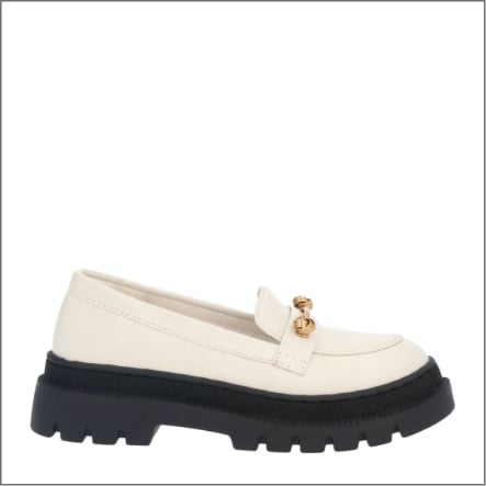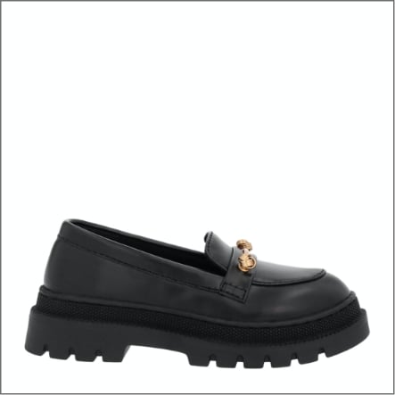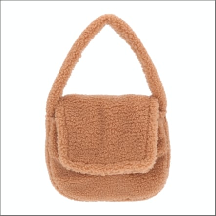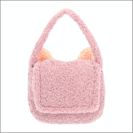 Even tiny fashionistas need wear-with-anything accessories in versatile neutral colours. Vivienne steps out in our classic and comfortable metallic accent penny loafers in failproof black — the striking gold details elevate the design and makes it look chic and polished. To add a playful touch to her ensemble, she pairs it with our furry top handle bag in cosy camel, which features adorable pink bunny ears.