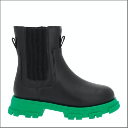 An all-black outfit will always be stylish, and works just as well on a child as on a grown-up. To inject a fun element into her dark winter look, Vivienne opts for our chunky Chelsea boots — their bright and bold soles in highlighter yellow will definitely turn heads wherever she goes. Equipped with handy side zippers, they are a breeze to put on and take off, even for small hands.