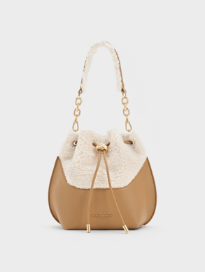 Love it or not, this season's shearling trend is here to stay. Our chic range features a diverse selection of shearling accessories, ranging from sneakers to bucket bags, allowing you to experiment with various options and effortlessly incorporate this trend into your wardrobe. Below, we present three different ways to wear and style shearling that will inspire you to make a bold fashion statement.