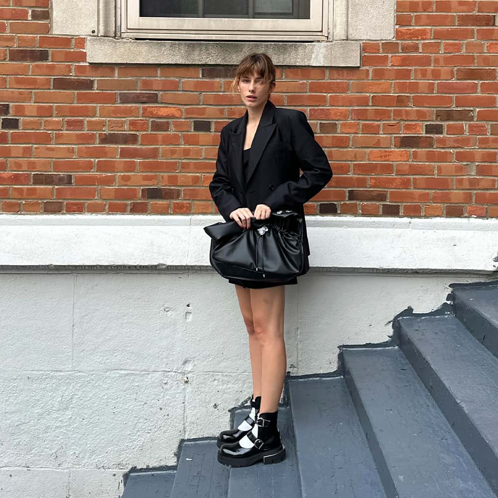 The sleek and modern Petra is the actress’ go-to bag of choice this season