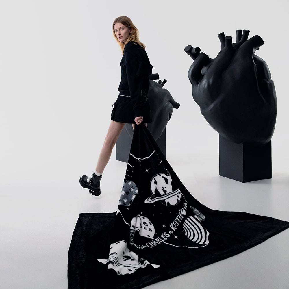 The exclusive “Heart Is Every Wear” collection is inspired by emotional authenticity — it includes a pair of ankle boots, a ruched hobo bag, a scrunchie and a plush blanket, all featuring an anatomical heart motif